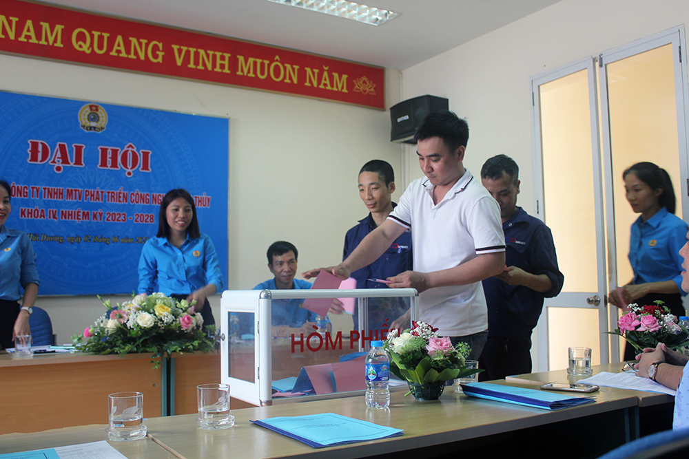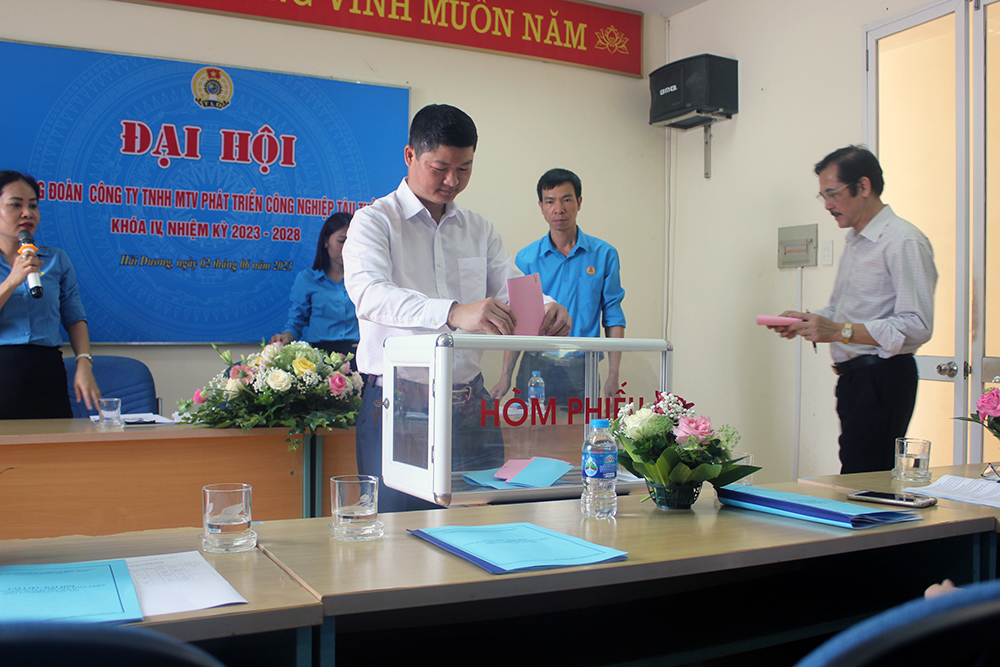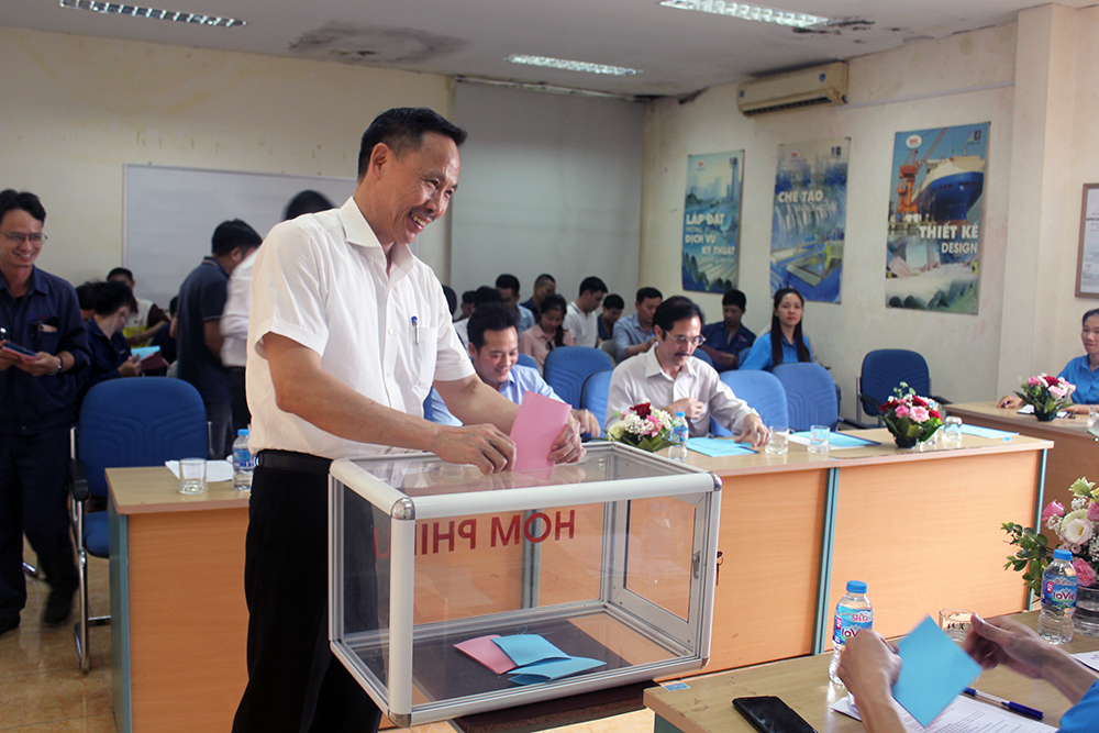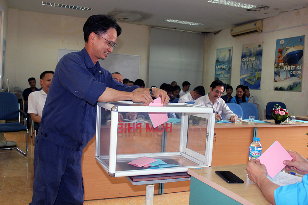 Cán bộ công nhân viên công ty thực hiện bỏ phiếu bầu BCH khóa mới