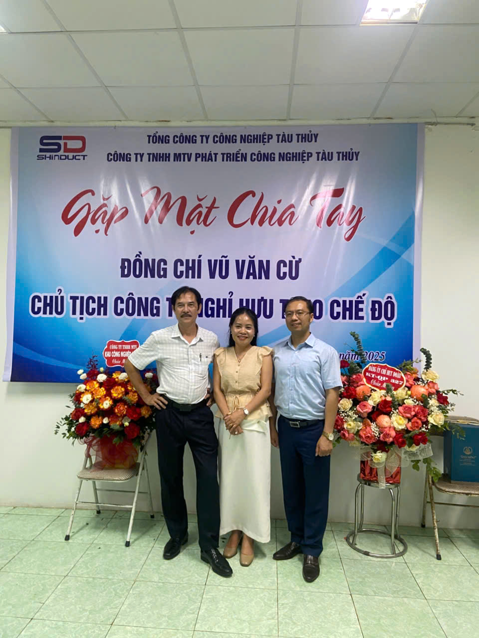 Tối ngày 26/06/2025, tại văn phòng công ty TNHH SHiNDUCT, tập thể cán bộ công nhân viên đã tổ chức buổi liên hoan chia tay Chủ tịch Vũ Văn Cừ – người sẽ chính thức nghỉ hưu sau nhiều năm cống hiến cho sự phát triển của công ty. Buổi tiệc tuy đơn sơ nhưng diễn ra trong không khí thân mật, ấm cúng, với sự góp mặt đông đủ của toàn thể cán bộ công nhân viên cùng đại diện từ Tổng công ty Công nghiệp Tàu thủy.