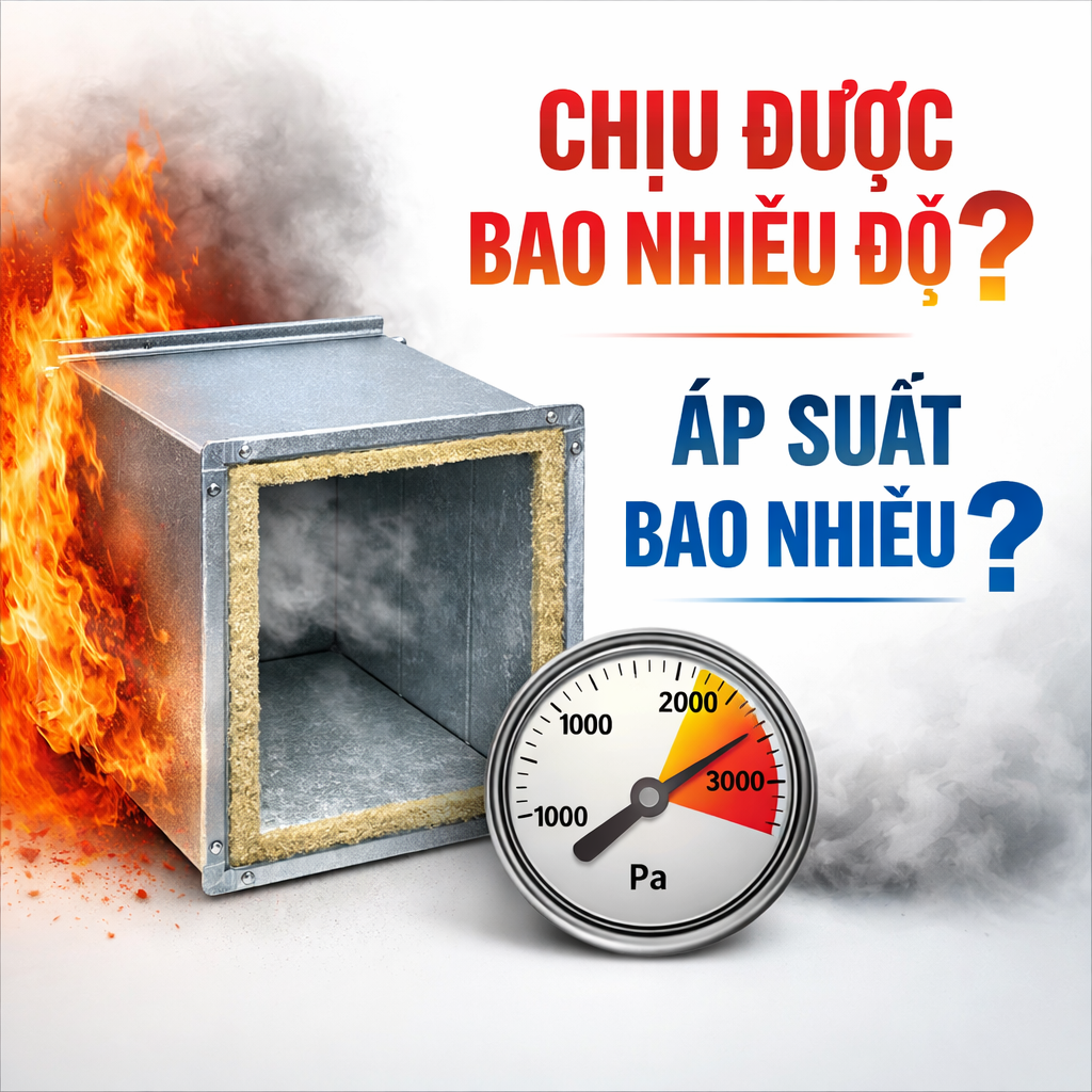 Ống gió chống cháy có thể chịu áp suất và nhiệt độ tối đa bao nhiêu?