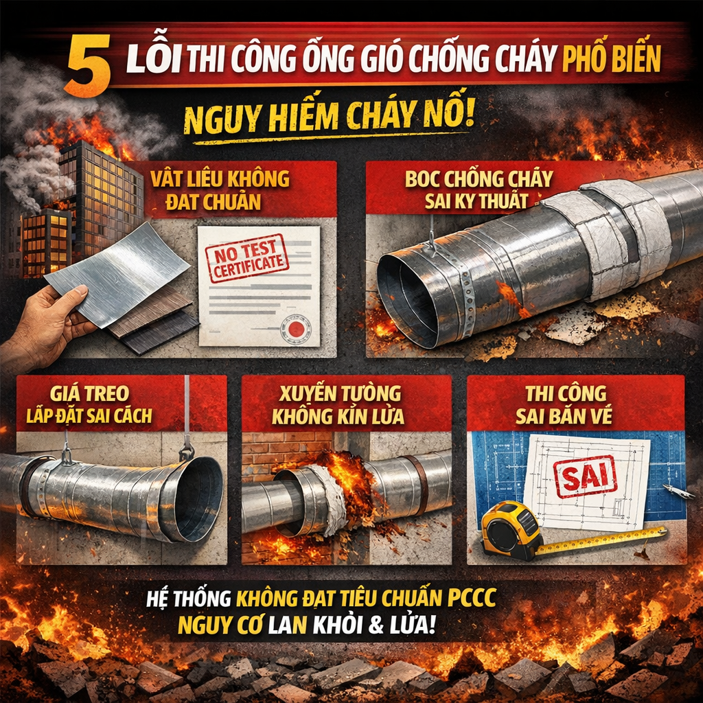 Các lỗi phổ biến khi thi công ống gió chống cháy và cách khắc phục