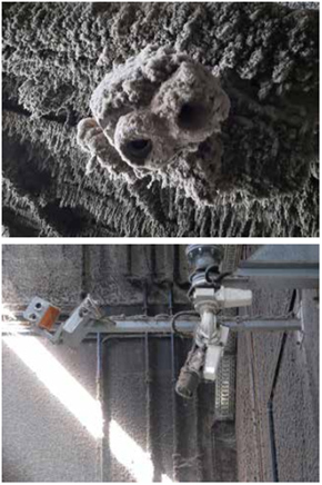 Hình 3: Thiết bị PYROsmart® hoạt động tin cậy kể cả trong điều kiện thường xuyên tiếp xúc bụi. Các khẩu độ quang học cho IR và video thường xuyên được làm sạch bằng tia khí nén, giữ cho chúng được sạch và rõ hơn.