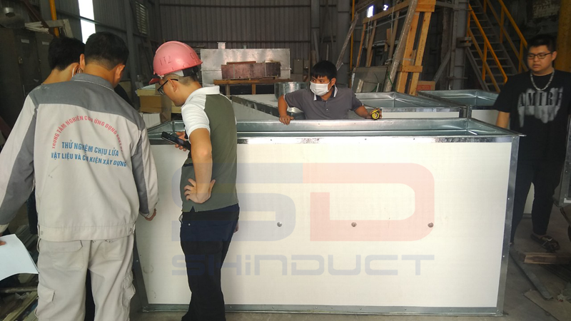 Quá trình đốt sẽ mô phỏng diễn biến có thể sảy ra trong thực tế, khi sản phẩm chịu tác động bởi lửa trong hỏa hoạn, qua đó đánh giá được tính toàn vẹn (E) và tính cách nhiệt (I). Vì vậy việc lắp đặt mẫu thử cũng được tiến hành như khi sản phẩm được lắp đặt trong các công trình ngoài cuộc sống. Dưới đây là những hình ảnh trong quá trình chuẩn bị, lắp đặt mẫu thử nghiệm chống cháy của ống gió Shinduct.